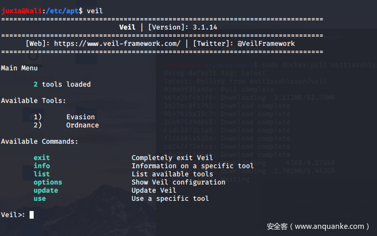 配置完成,在命令行输入veil指令就可进入到Veil: