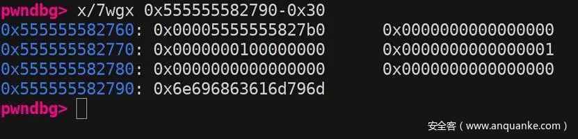 上面的是我们的分配,下面是目标字符串mymachine。仅相隔0x4790-0x4370 == 0x420字节。不错,这似乎可行。