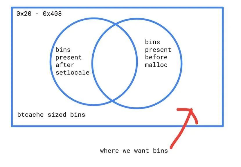 现在,我们要使用LC_MESSAGE分配一个块,并在setlocale中再次释放它,以使该块可在以后执行溢出时使用。这样,我们就可以在堆上获得更大的块。