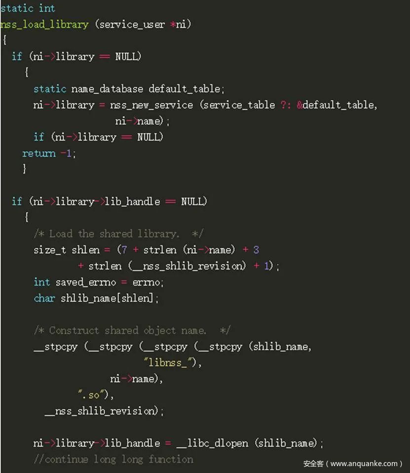 nss_load_library在溢出加载新的动态链接库后,libc中经常使用此结构,我们可以使文件名溢出,然后控制要加载的库。然后,我们可以针对我们可以制作的将以root特权运行的非特权库为目标。
