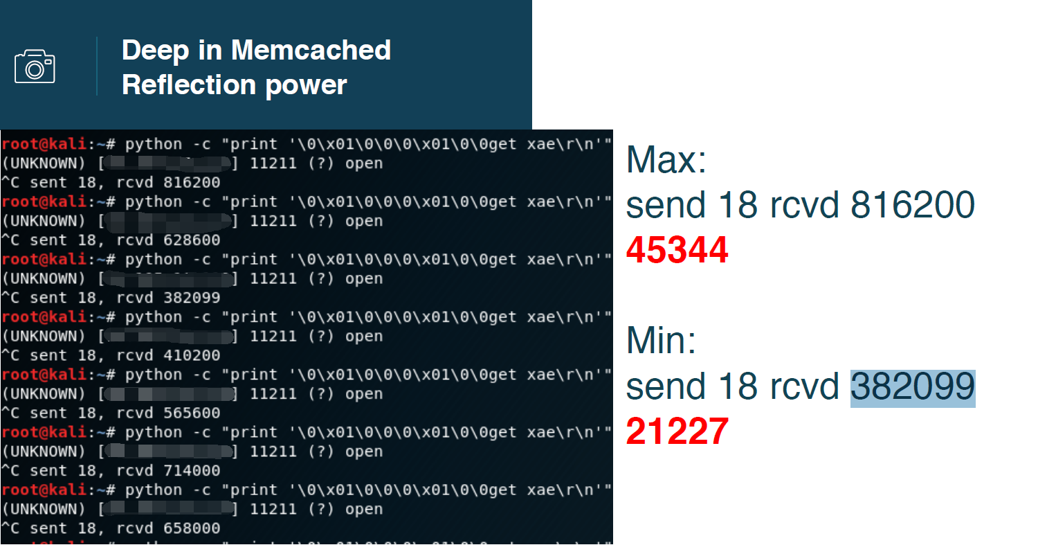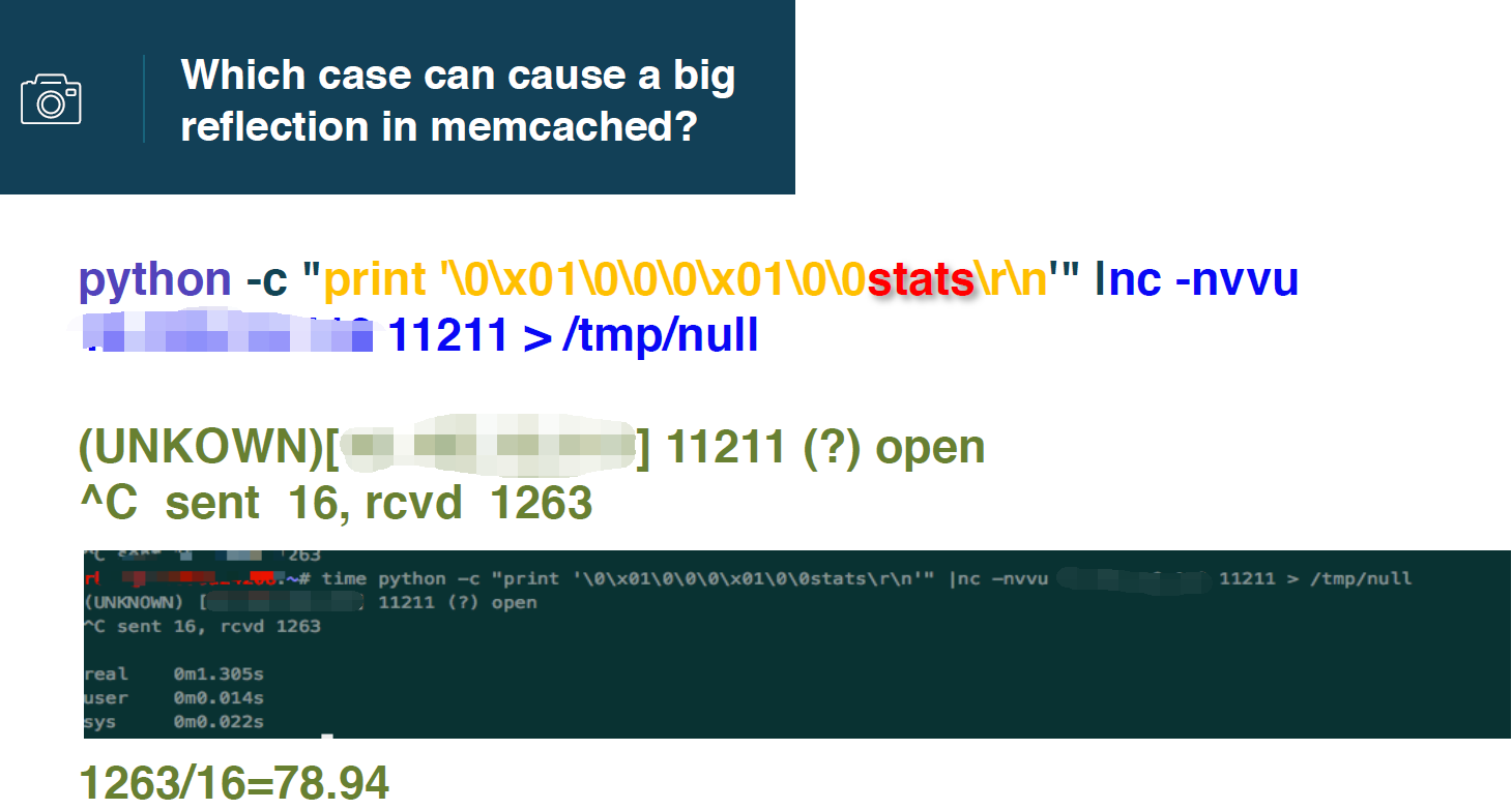 - 由于Memcache同时监听TCP和UDP,天然满足反射DDoS条件。