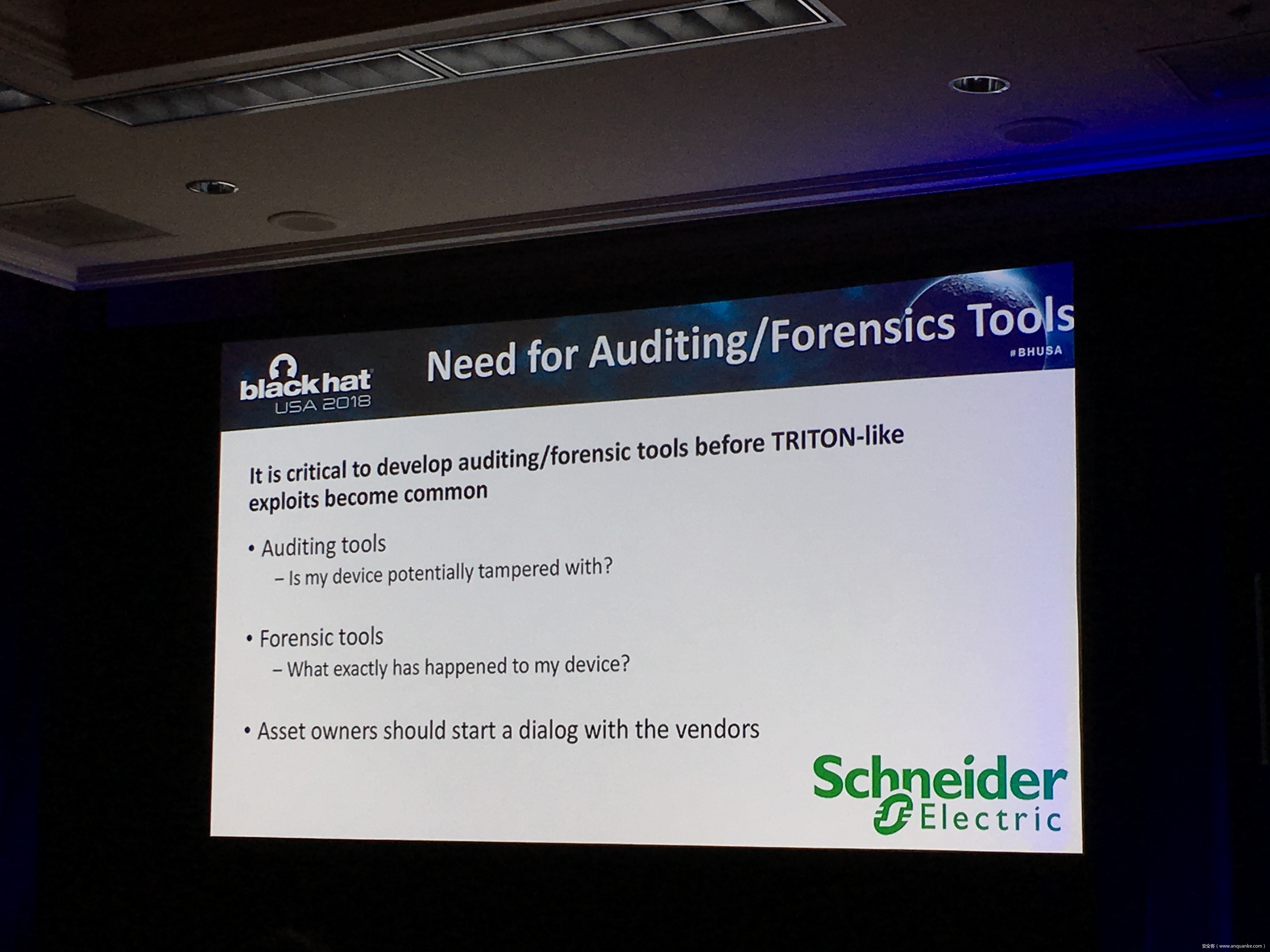 最后,我们将向各大供应商介绍为什么现在迫切需要针对工控系统的设备安全审计工具以及取证工具。这些工具必须在TRITON攻击演变成大规模网络攻击之前设计并部署到各大关键基础设施之中,现在就是我们展开这部分工作的时候了。黑客领域是一个高速发展的领域,一旦某种攻击技术的可用性达到了攻击者的要求,他们每个人都会跃跃欲试。