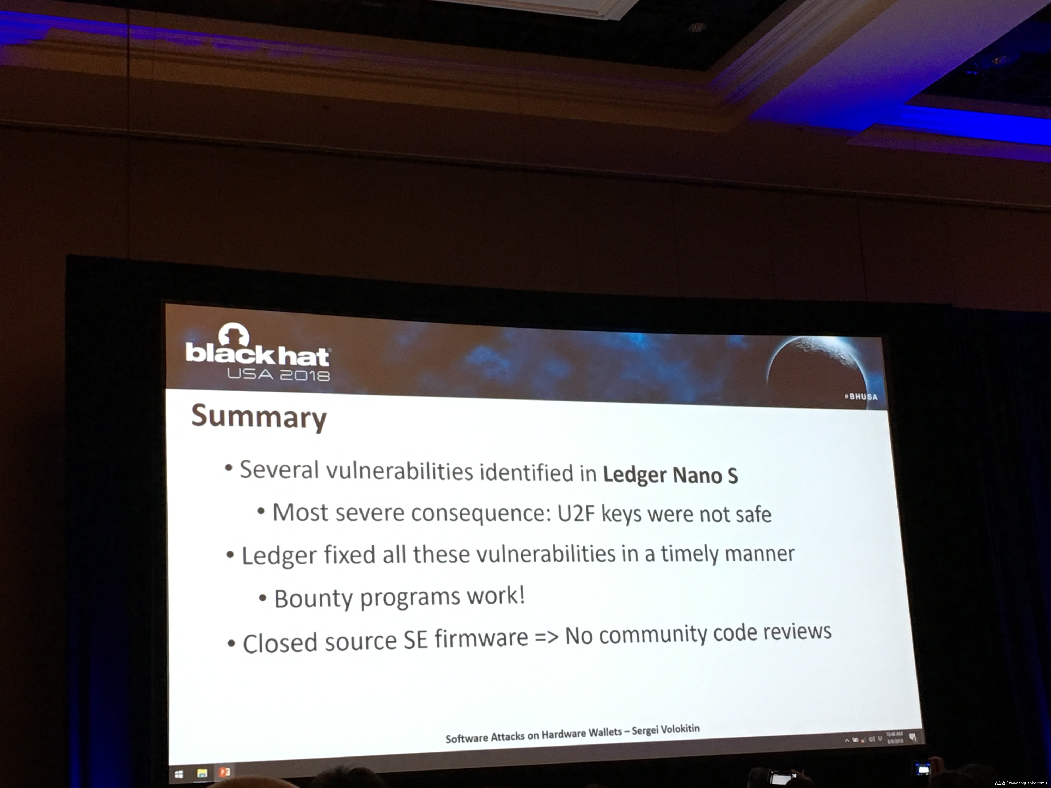 但是这些设备到底有多安全呢?在我们的这项研究中,我们将演示如何通过软件攻击来打破硬件钱包的安全保护机制。我们会对硬件钱包的安全实现进行分析,并介绍相关元素是如何被攻击者利用的。我们将介绍我们在硬件钱包中发现的安全漏洞,并描述TEE操作系统中的这些安全漏洞将如何导致攻击者成功入侵设备的内存隔离区域。除此之外,我们还会对硬件钱包的操作系统以及其他用户端应用程序进行深入分析。最后,基于我们发现的漏洞提出一种新型的攻击模型,这种攻击技术将允许任意用户获取目标钱包的安全密钥以及通信数据。接下来,我们会介绍如何利用这些漏洞来构成供应链攻击,而这种攻击方式将允许攻击者绕过目标设备的安全保护功能,并进一步拿到设备的完整控制权。