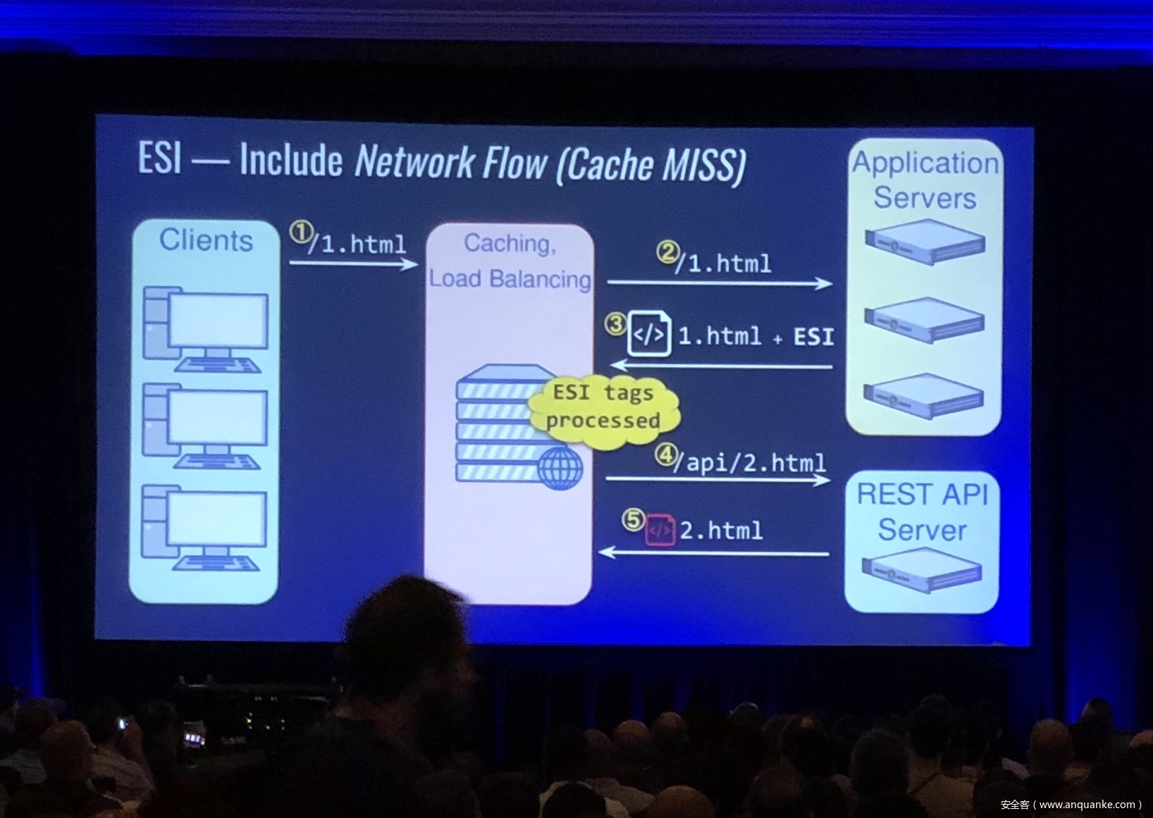 自从缓存服务器和均衡负载整合到互联网基础设施中之后,厂商引入了一种名叫ESI(Edge Side Includes)的技术,缓存系统在引入了这种技术之后,将能够提升功能的可扩展性。现在几乎所有流行的HTTP代理(缓存/负载均衡服务)都实现了这种遗留技术,而这种技术又存在设计缺陷,并且会给相应的服务带来安全风险。