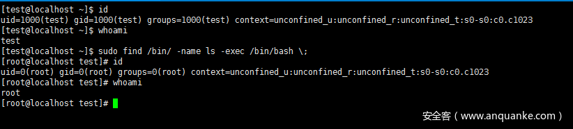 对于find 检索到的每一个结果,都执行/bin/bash, 是以root权限执行的哦,很方便的获取root 权限的shell
