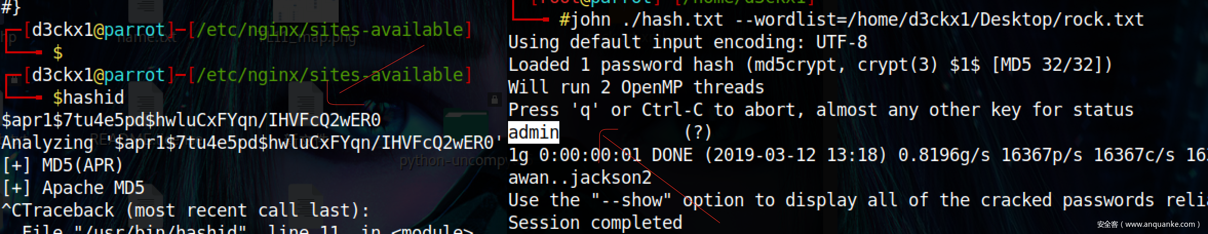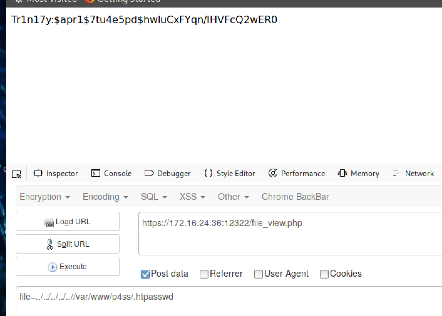 发现了 /var/www/p4ss/.htpasswd , 我们进行查看