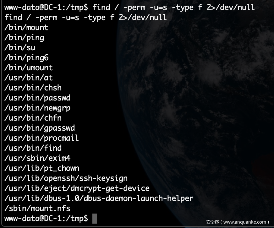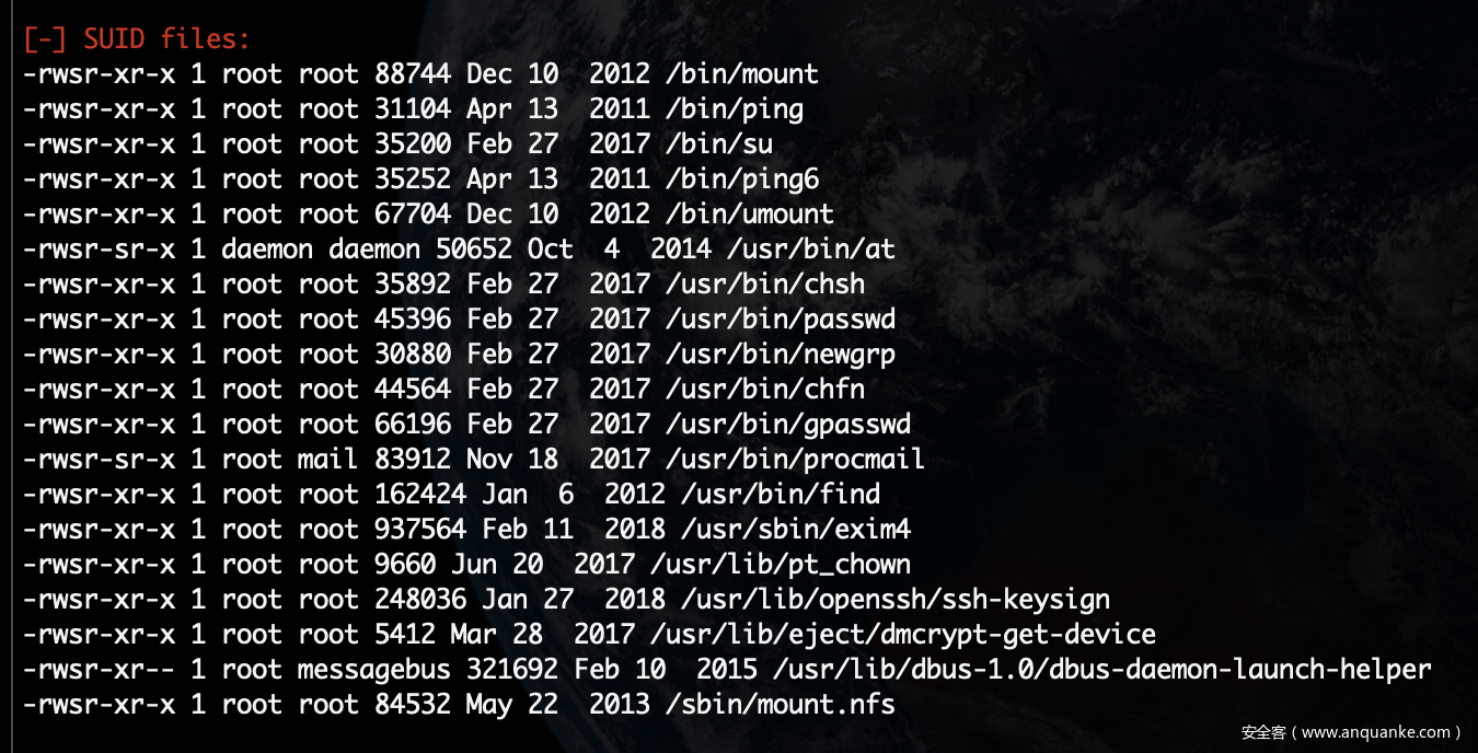 (注:这个也可以通过这个命令直接查看,命令:find / -perm -u=s -type f 2>/dev/null