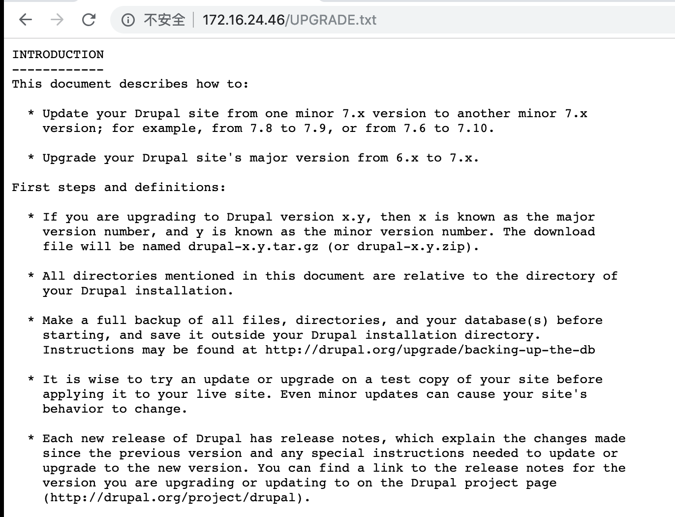 访问 /CHANGELOG.txt 出错,我们可以访问/UPGRADE.txt来确认升级情况一样能判断出版本… 哈哈哈