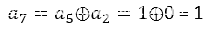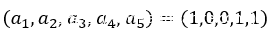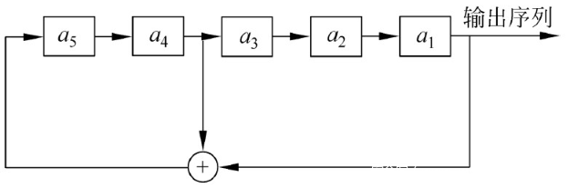 我们接下来通过一个例子来更直观的明确LFSR的概念,假设给定一个5级的LFSR,其初始状态(即a1到a5这5个二元存储器的值)为: