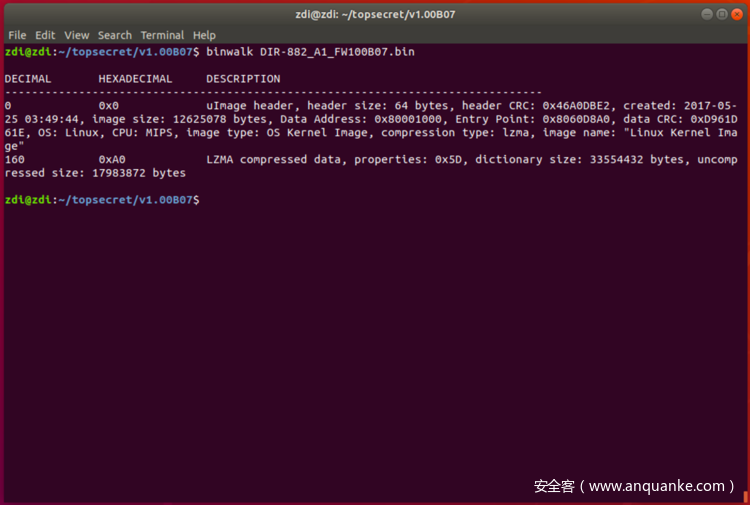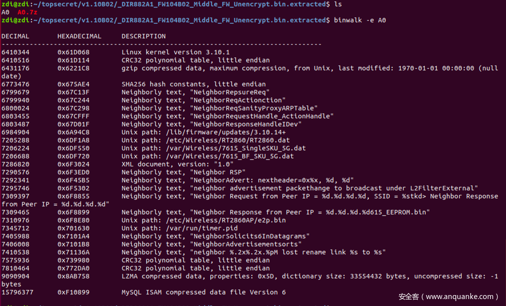 图6. 使用binwalk处理DIR-882早期固件的扫描结果