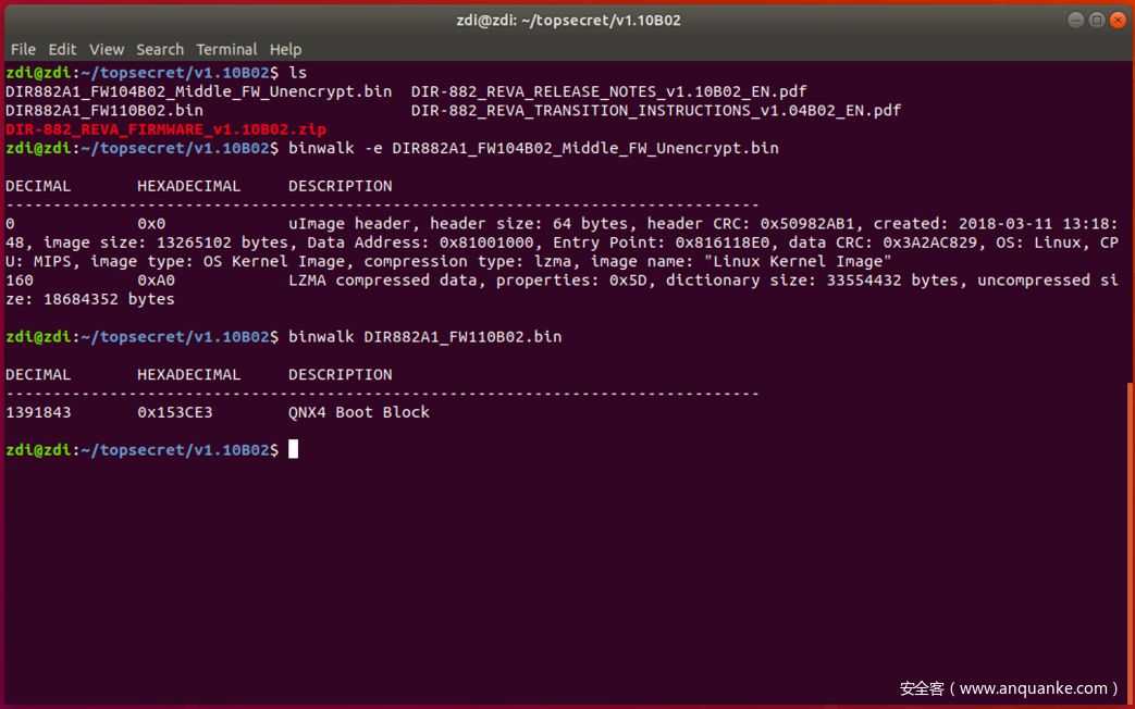 然后我们可以使用binwalk从v1.10B02版固件中提取文件系统。