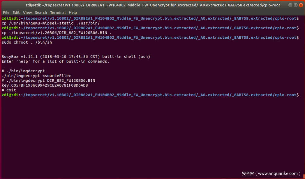 图10. 使用QEMU执行跨架构chroot并解密固件