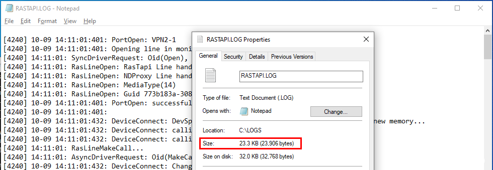 这种方法行之有效,NT AUTHORITY\SYSTEM用户会写入日志文件。目前日志文件大小约为24KB。