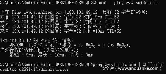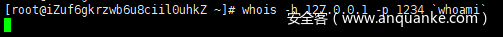 对它使用whois命令使其命令执行结果返回给nc监听的端口,从而在自己服务器中查看