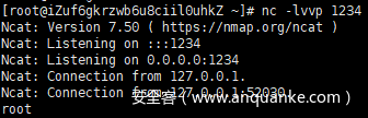 在实际的攻击场景中,可以在自己的攻击服务器上用nc监听一个公网端口,然后在存在命令执行漏洞的网站中发送payload请求,