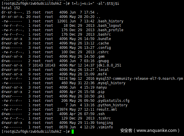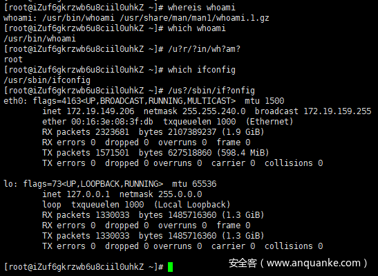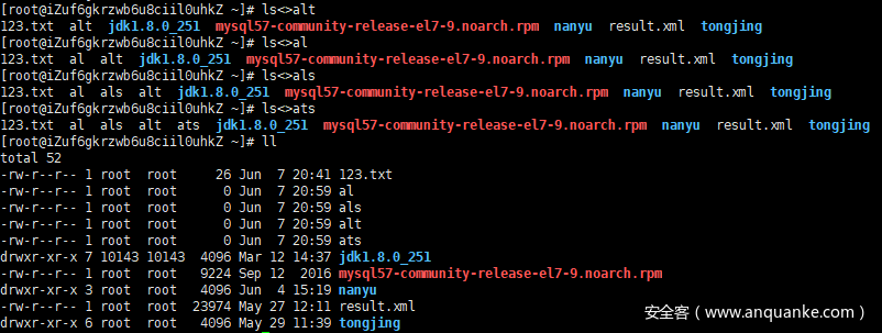 我们还可以使用<>来绕过空格。请仔细看执行后的效果。linux中,小于号<表示的是输入重定向,就是把<后面跟的文件取代键盘作为新的输入设备,而>大于号是输出重定向,比如一条命令,默认是将结果输出到屏幕。但可以用>来将输出重定向,用后面的文件来取代屏幕,将输出保存进文件里ls<>alt