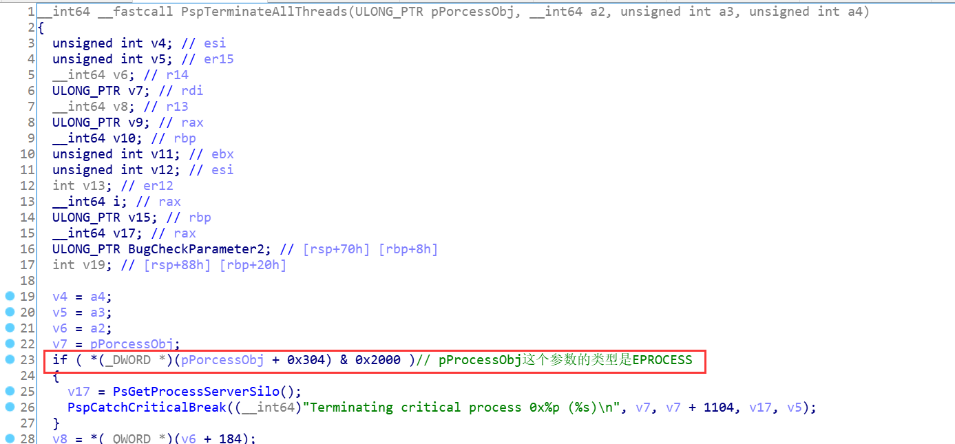 4、IDA分析nt!PspTerminateAllThreads内部针对Critical Process、Thread的特殊处理