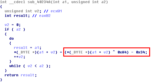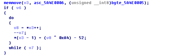 C&C的加密算法如下所示,也是简单的XOR及加减处理,甚至其对应操作的变量都是一致的: