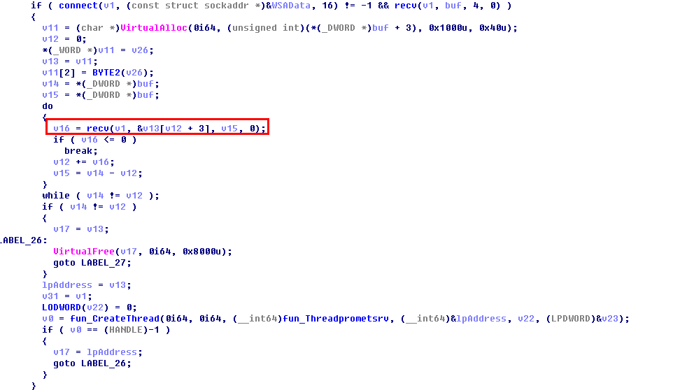 该模块为一个Loader,用于下载对应的metsrv.dll,下载回来的DLL为Metasploit生成,对应的C&C地址通过异或加减操作解密: