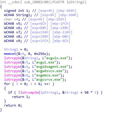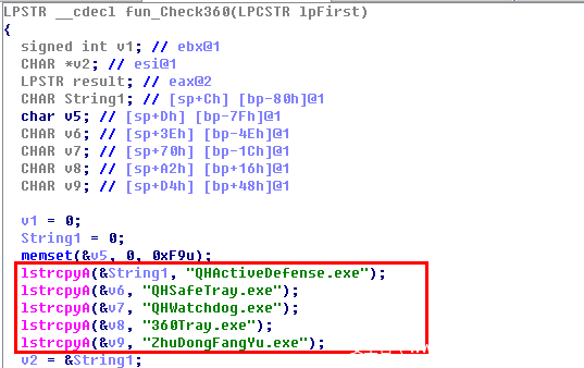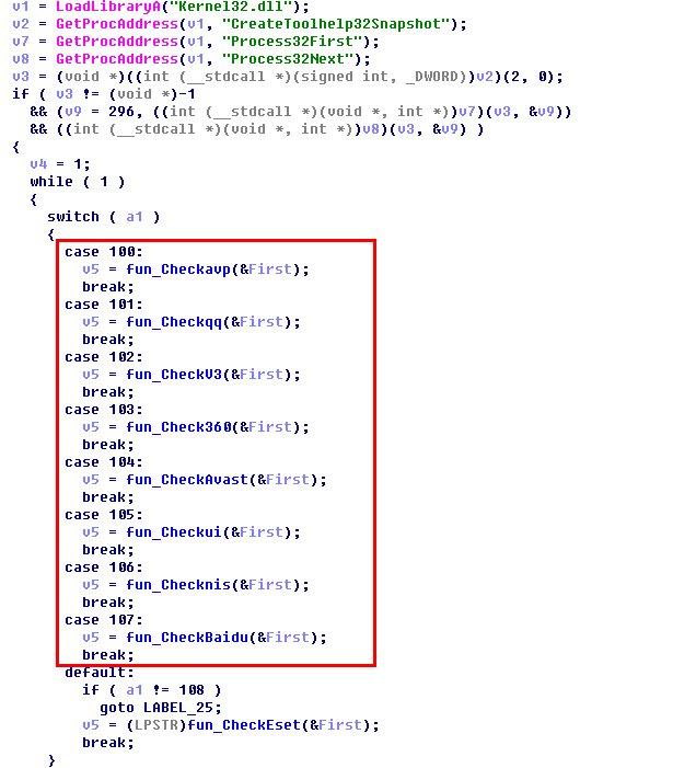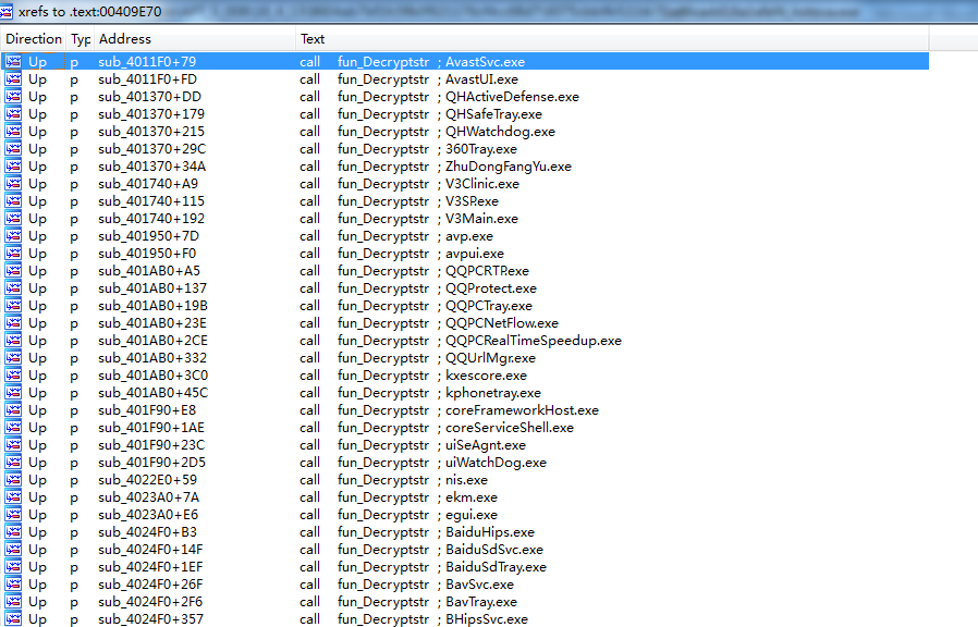 Loader中本身内嵌了杀软的检测代码,如下所示,可以看到早期的样本中检测杀软比最新版要多很多: