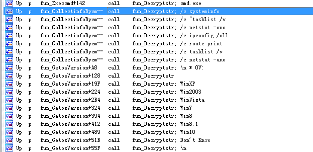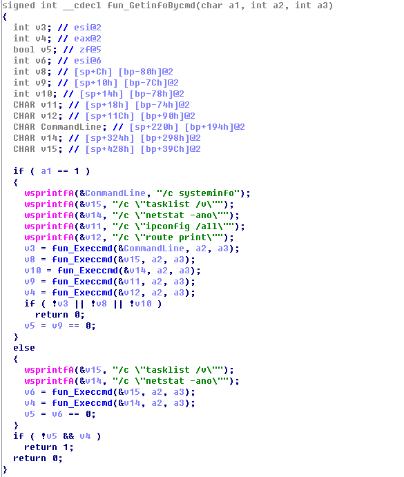 fun_CollectinfoBycmd函数中通过CMD命令获取操作系统状态: