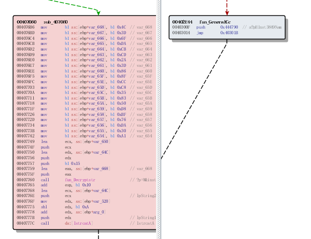 样本中使用的相关字符集函数名称都行了加密,加密的方式包含以下三类: