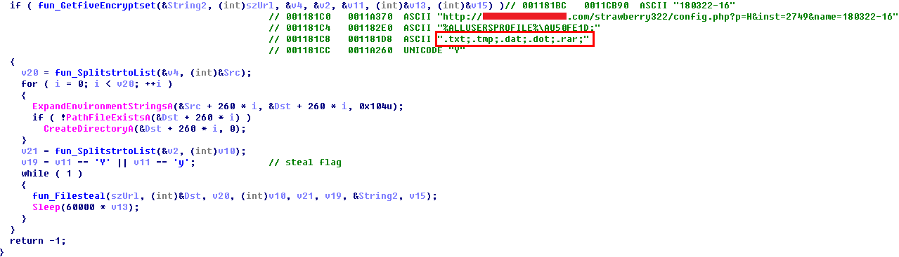 紧接着开启第二个线程用于窃取用户数据,窃取的主要文件后缀有: