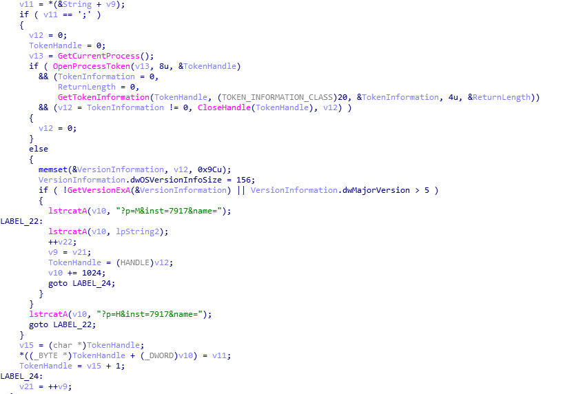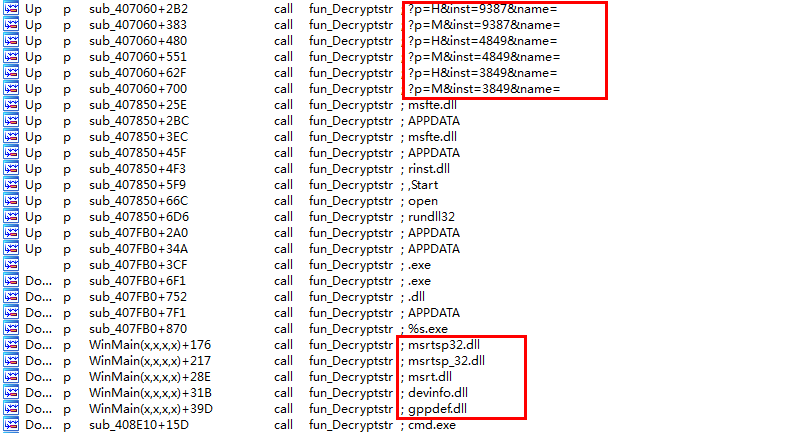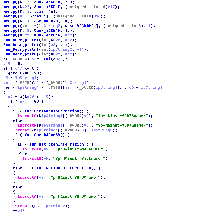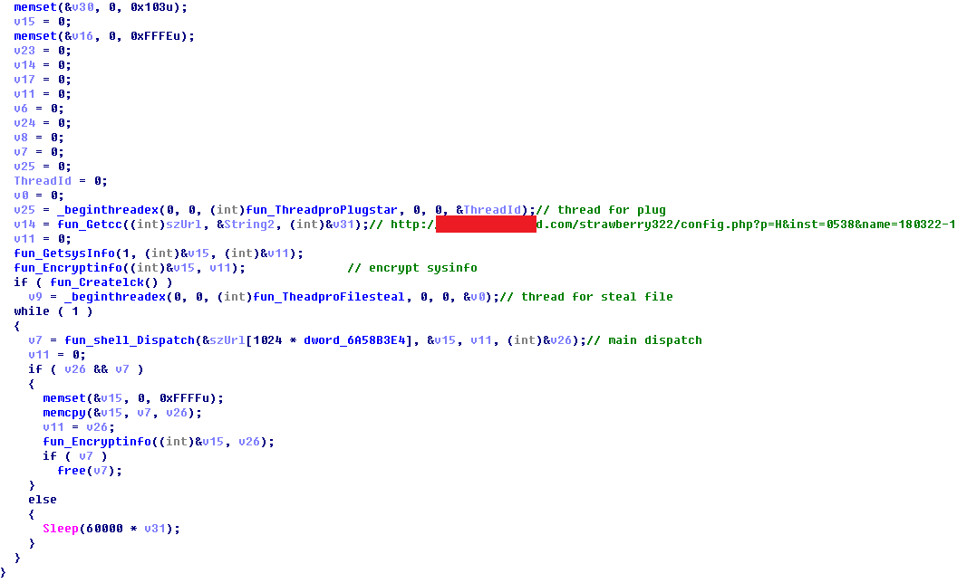 主线程中只对C&C进行了加密处理,如下所示其URL的字段和现在的版本基本一致: