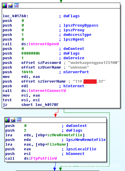 收集的信息及对应的打包文件通过FTP上传,FTP服务器IP地址:119.xx.xx.32