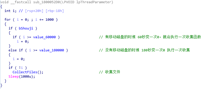 最后判断是否有移动磁盘,有的时候,会60秒执行一次收集函数,没有的时候180秒执行一次: