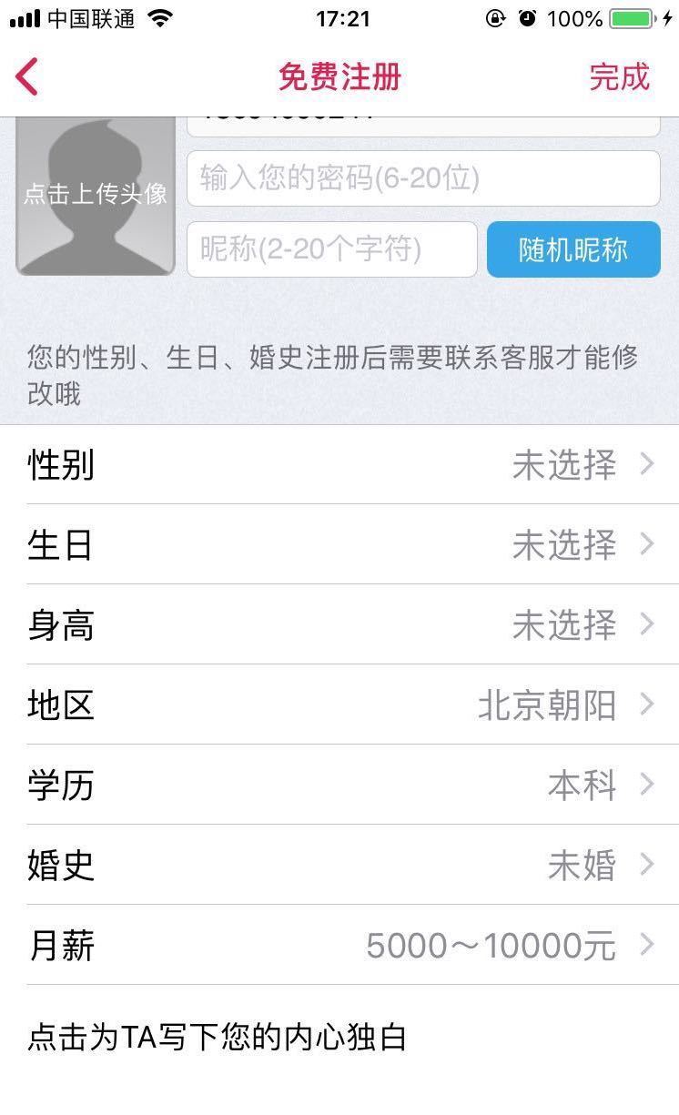 不愧是是大厂,从注册信息就可以看出非常专业,从学历,到婚史一应俱全,还贴心的准备了交友宣言。