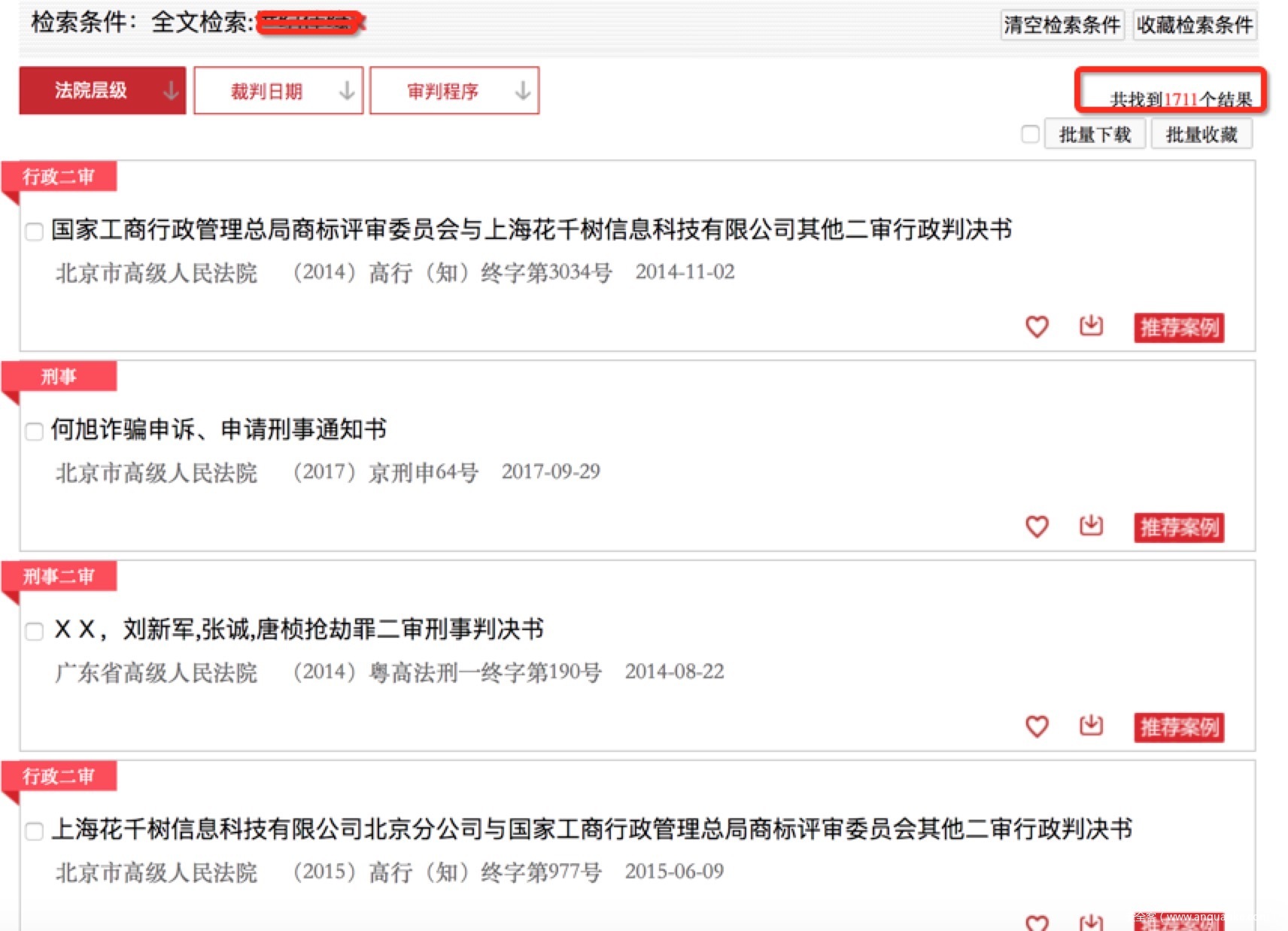在某法律检索平台上搜索该网站,共有法院判决1711起,其中刑事516起,民事924起。