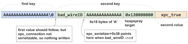 这个特殊的漏洞似乎是在iOS 11的一些重构引入的,就像XPC代码在“快速模式”下解析序列化的xpc字典对象一样。旧版本代码如下: