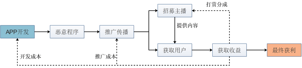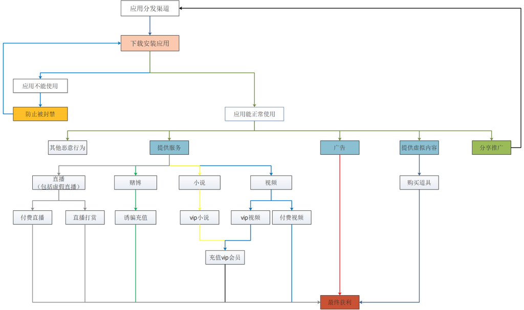 通过对该类样本进行分析可知,该类样本主要由防止被封禁、获利、分享推广获取新用户三部分组成,其主要工作原理如图1-2-1所示。