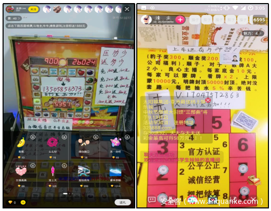 视频直播类黑产是指打着视频平台、直播平台的旗号,从事传播色情内容、传播恶意应用等非法内容并以此获利的黑色产业链。这些黑色产业链条有成熟的运行机制,它们通过涉黄直播、淫秽视频、黄色小说、赌博游戏等内容来吸引用户,通过广告、用户充值消费、诱导用户赌博等手段来获取收益。为了获取更大利益,有些平台使用录制的直播视频替代真正的主播以降低成本,有些赌博游戏的开奖结果则被牢牢控制。不仅如此,通过这些非法平台,也催生出了大量的网络招嫖、网络赌博、网络诈骗等犯罪行为。