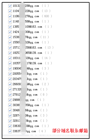 分别通过联系人和联系邮箱进行whois反查,可以分别查询到1643个和13个注册域名,在反查到的域名中,可以关联到大量的联系邮箱,以27***6492@qq.com为例,找到了邮箱对应的QQ号信息。