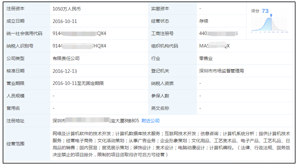可以看到其中有一个注册者为深圳市**科技有限公司,该公司的法定代表人为何**,该公司的基本信息如下图所示: