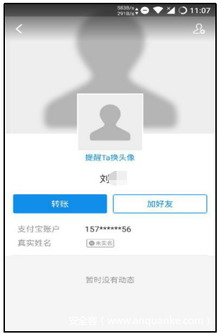 使用邮箱前缀的手机号进行搜索,可以查找到改手机号绑定的支付宝账户,但是并未实名认证。