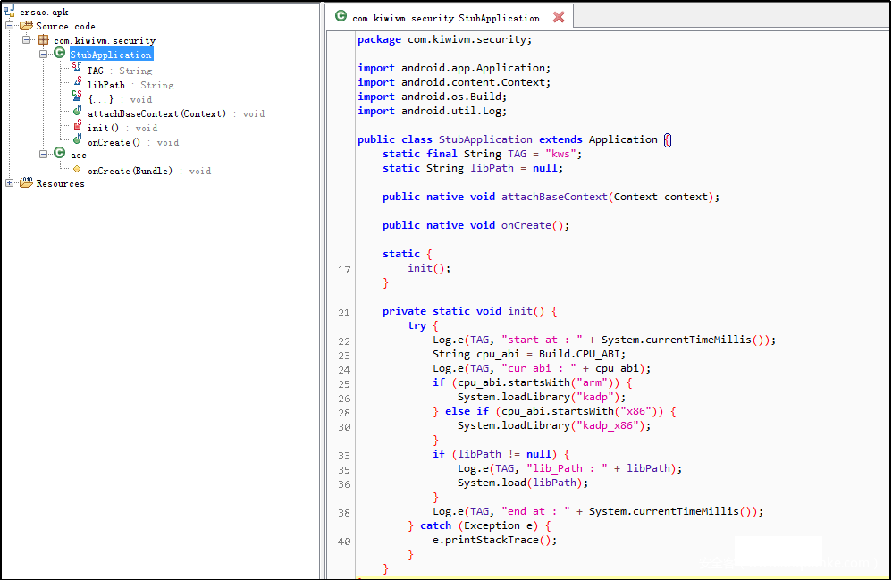 部分程序为了防止被反编译,采用了知名第三方产商的加固系统进行代码加固保护。