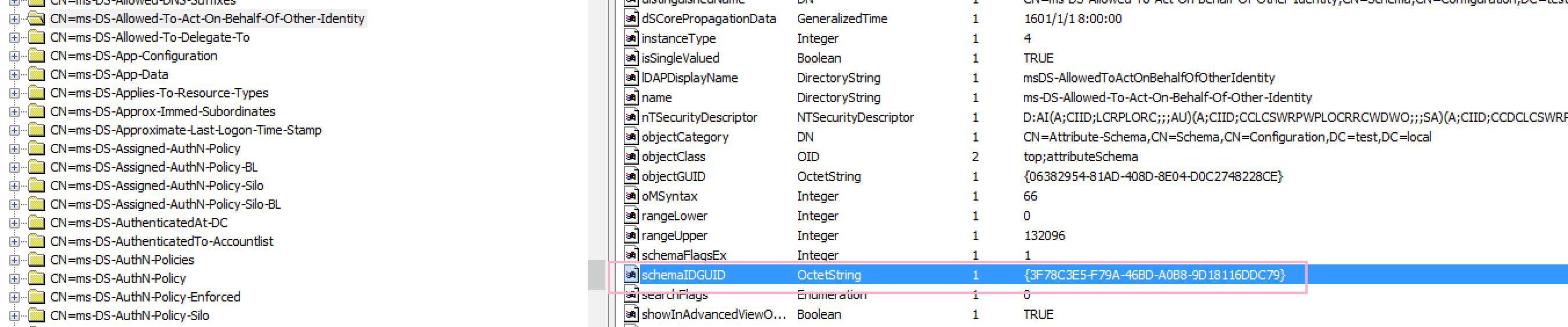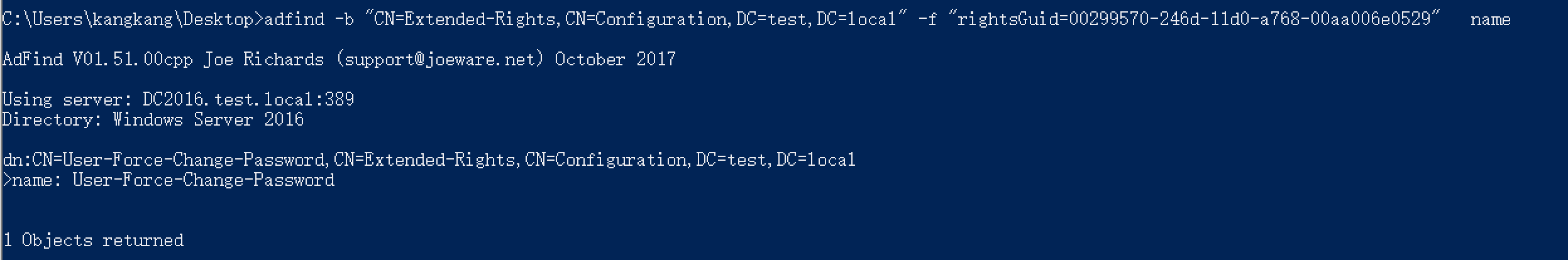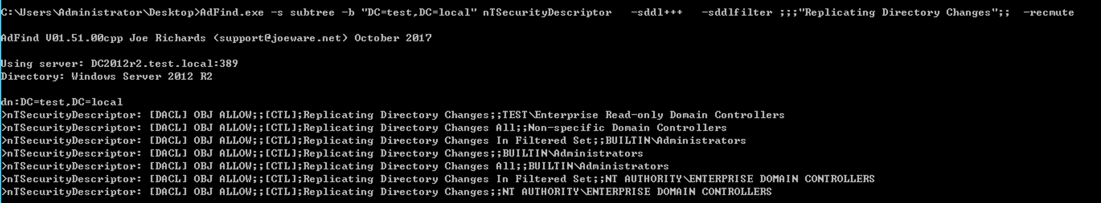AdFind.exe -s subtree -b "DC=test,DC=local" nTSecurityDescriptor -sddl+++ -sddlfilter ;;;;;"TEST\DC2016$" -recmute - 查找更改一个对象的马上到!S-AllowedToActOnBehalfOfOtherIdentity的权限