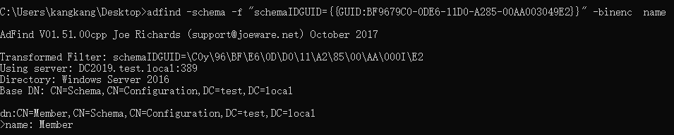 adfind -schema -f "schemaIDGUID={{GUID:BF9679C0-0DE6-11D0-A285-00AA003049E2}}" -binenc name