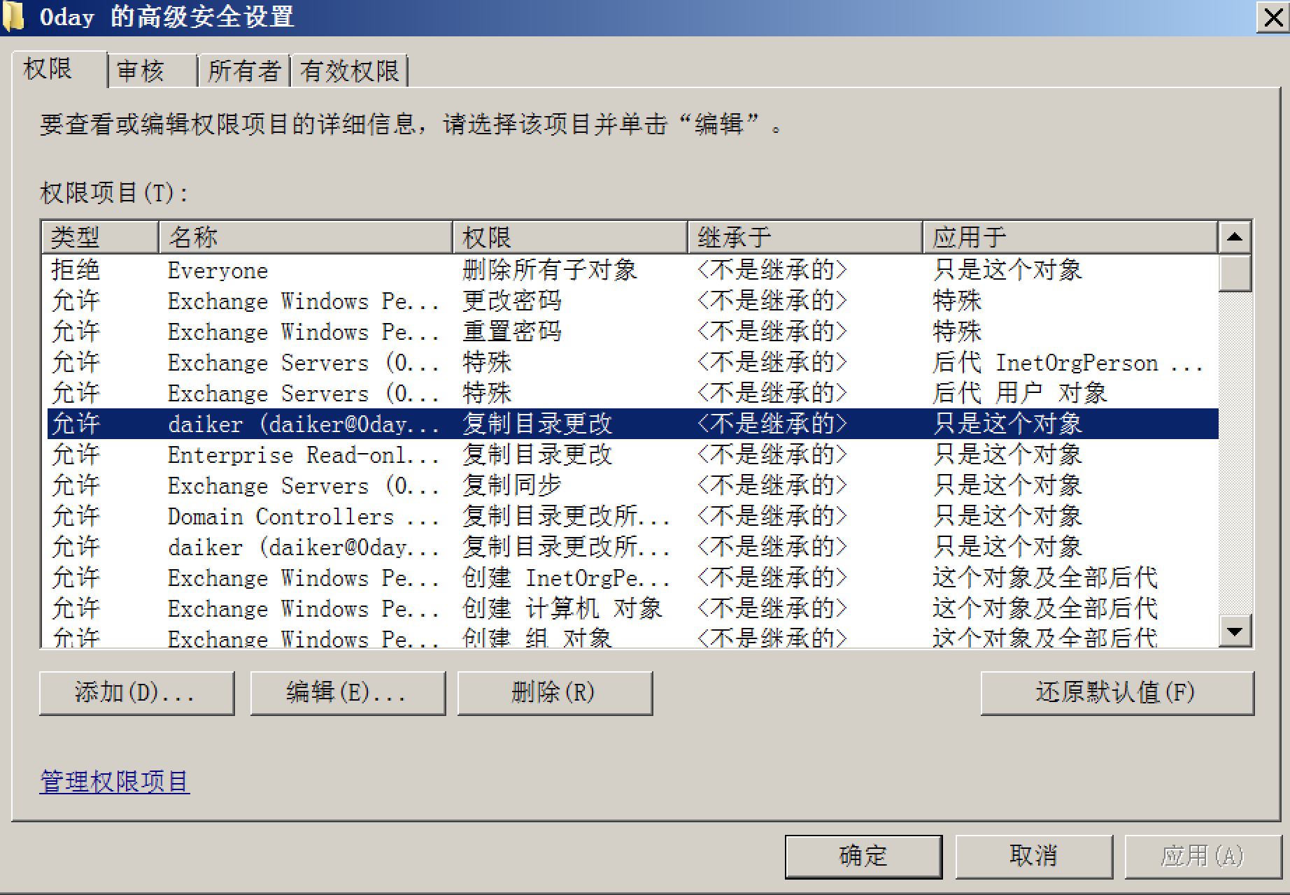 ● 扩展权限全面说的都是读写执行权限,但是域内的安全对象相对较为复杂,读写执行权限是不够用的,域内的ACL也支持扩展权限,比如强制更改密码。