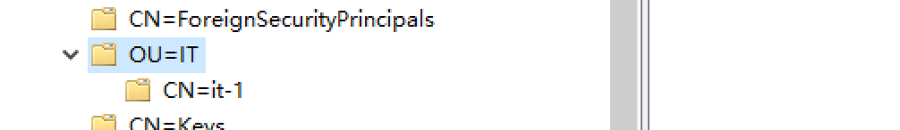 如上图所示,如果我们将权限作用作用于OU=IT,如果设置这个权限能够继承的话,那这个权限能够作用于CN=it-1。