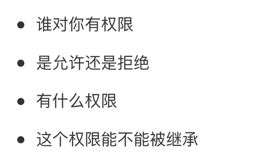 前面说能访问吗,其实是很笼统的说法。关于权限,大致可以划分为三个大的权限。