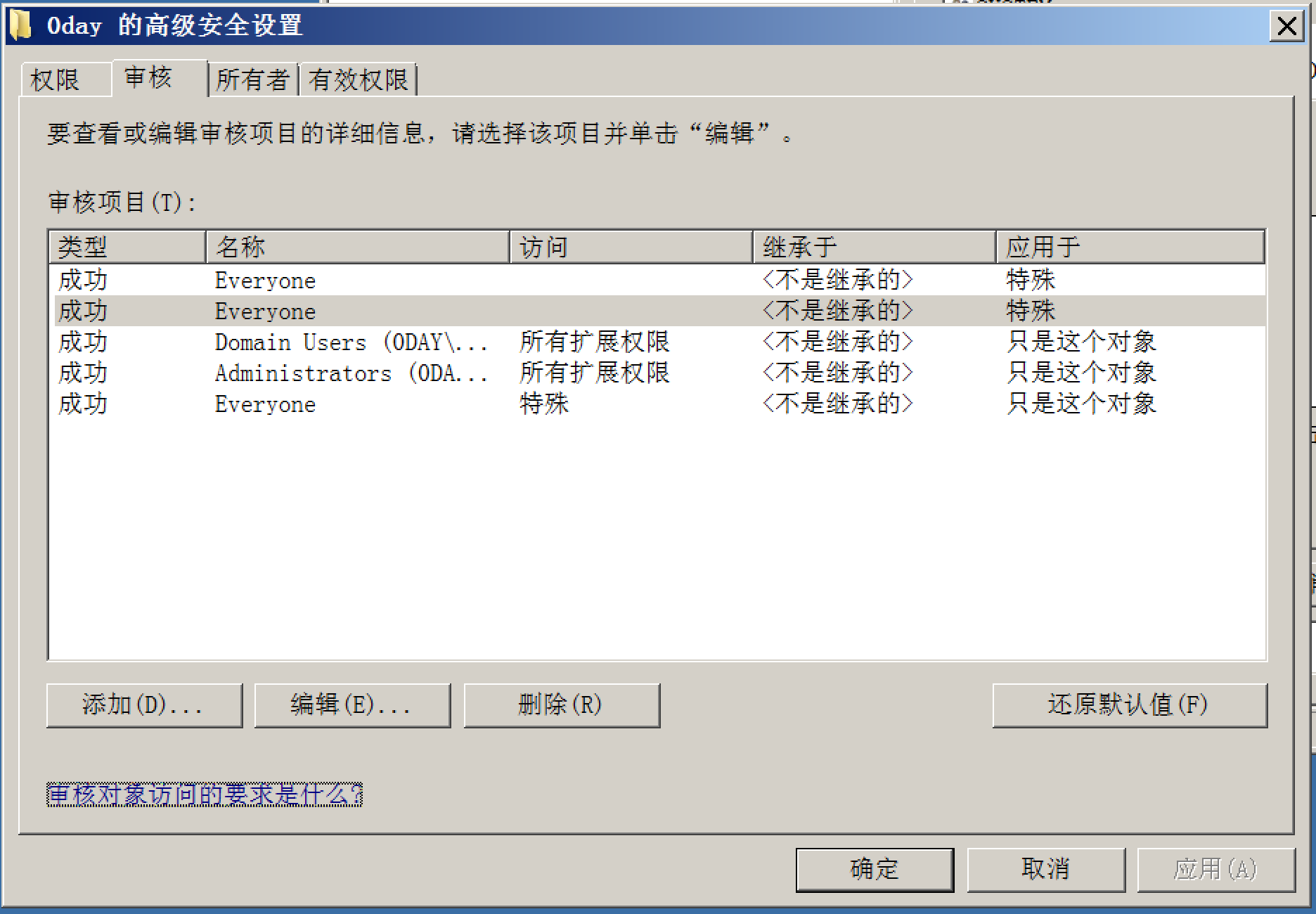 SACL的作用是记录访问成功与否,SACL也是由一条一条的ACE构成,每条ACE的内容是某个用户访问成功/失败 某个权限。当访问跟满足这条ACE的时候就会被记录下来。