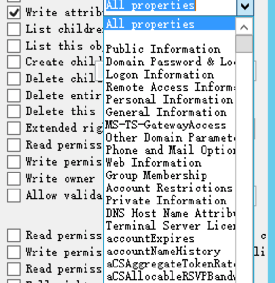 对于某个具体属性的权限或者扩展权限,是哪个属性或者是哪个扩展权限,体现在对象类型里面,类型是GUID。