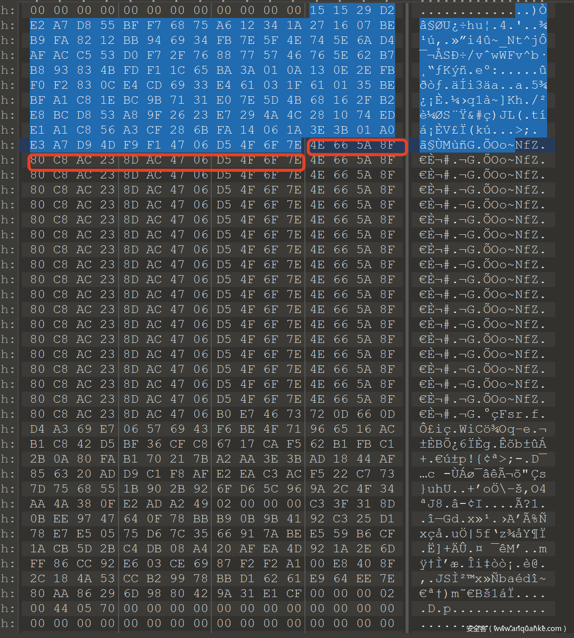 在样本中还硬编码了一个使用XOR加密的配置文件及密钥: