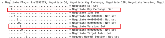 所以这一步,需要将4个Flag 位(TLMSSPNEGOTIATEALWAYSSIGN,NTLMSSPNEGOTIATESIGN,NEGOTIATEKEYEXCHANGE,NEGOTIATEVERSION)置0。